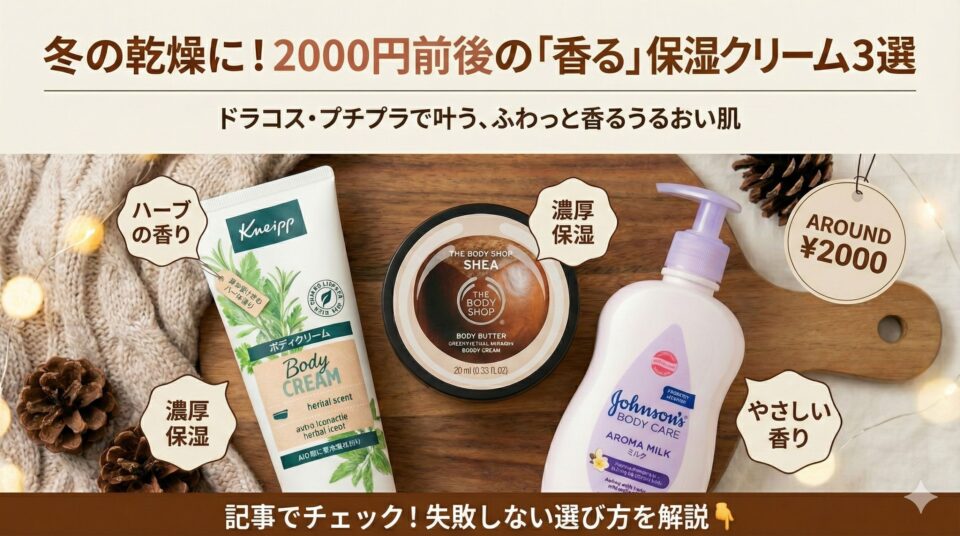 そんな悩める「香り好き&乾燥肌民」のために、今回は**ドラッグストアやバラエティショップで買える(ほぼ2,000円前後、ジョンソンはワンコイン!)」**なのに、