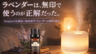 Amazon1位のPovenラベンダー精油は本当に使える?無印の超音波アロマディフューザーと組み合わせて検証。初心者向けの使い方・滴数・注意点を実用目線で解説します。